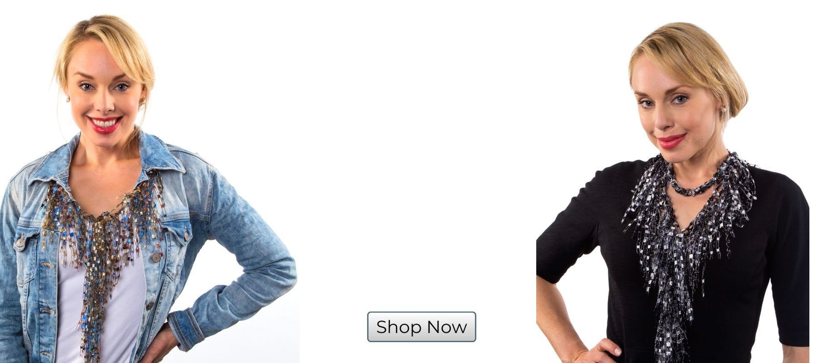 Women who like the look of a traditional fashion scarf but find them too hot to wear fall in love with the Scarf Necklace by ScarfLady. And because the scarf necklace shimmers as if beaded, they are often thought to be chunky statement necklace jewelry but are not too heavy to wear (weigh less than 1 ounce or 20 grams).