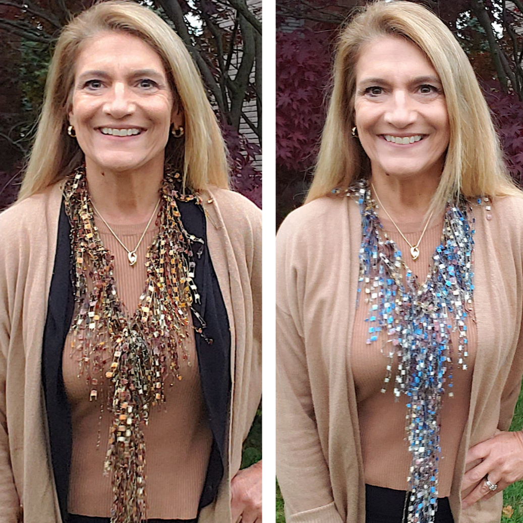 ✅ Like fashion infinity scarves or chunky statement necklaces without the bulk, warmth or weight around your neck!