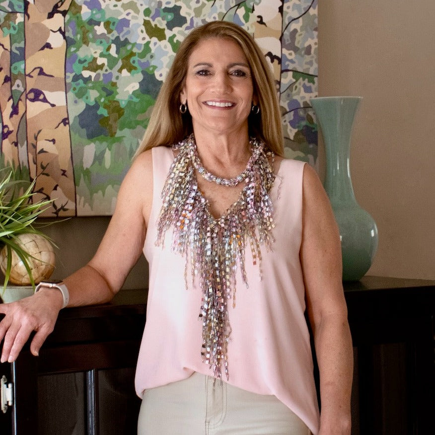 • Handmade with soft metallic yarns