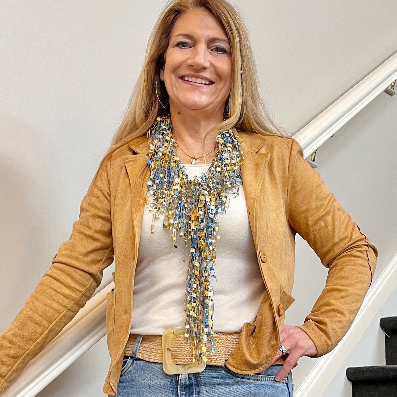 3. Wear the Scarf Necklace Double Loop for a more casual , less structured or defined look than the French Knot Style.